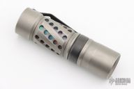 Helical Torch - Titanium with anodized inner sleeve and Topo pattern clip - Samsung 351 D5K - 163401MR 700mAh unprotected button top - Stonewashed Finish Helical Thin Groove - Dragon Driver - has green secondaries. Comes with original COA. Excellent condition.