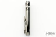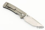 This Chaves Ultramar Liberation Drop point features a satin finished tanto blade with the Chaves logo. The handle is made up of black G10, tumbled titanium, skull pocket clip (positioned for tip up carry), and a titanium backspacer.  Excellent Condition.