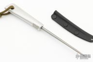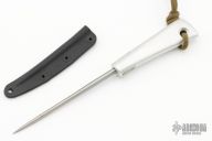 This Aluminum Spike by GHK features a satin finished spike made from British "Stubbs" silver steel tool steel, .204" thick. The handle is an aluminum grip with checkered thumb and finger rests. Comes with a kydex sheath. New from maker.
