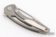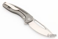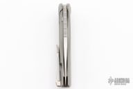 This Void model has a bead blasted titanium frame and a hand rub satin finished M390 steel blade. The Sharp By Design Void offers a compact and stylish design from celebrated knife-maker Brian Nadeau. It was designed for comfortable EDC use and carry, with a "Void" hole in the blade for finger flick opening and a low profile flipper for more traditional one-hand deployment. The blade provides a nice deep belly with a hollow ground bevel for maximized cutting and slicing performance. These Void models are produced by Reate for an ultra-clean fit and finish. Features: Bohler M390 blade steel for excellent edge retention, corrosion resistance, and a high level of toughness. Finger flick "Void" hole and a low-profile flipper offer one-handed, ambidextrous deployment. Item includes a titanium pocket clip for comfortable tip-up carry. Excellent condition.