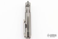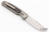 This Caballero Front Flipper by Enrique Pena features a satin finished blade with a front flipper and notched thumbrest. The handle has a titanium frame, ebony wood inlays with a titanium backspacer and matching tip up pocket clip. Includes a Pena X-Series padded box. Excellent condition.