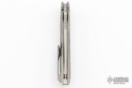This Neon NL by Shirogorov features tumbled blade with notched thumbrest and flipper. The handle has a tumbled titanium frame with crazy micarta inlays. Rides on MRBS. Excellent condition.