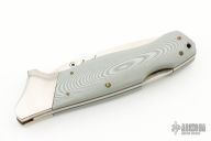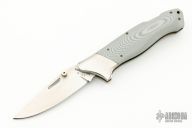 This Model 52G by Condor USA features a satin finished drop point blade with notched thumbrest and single thumbstud. The handle has stainless steel bolsters, gray paper micarta scales. Comes with a brown leather sheath. Has some light scratches and patina, otherwise excellent condition.