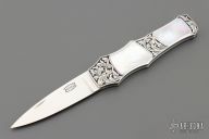 John (Jack) Busfield is from Roanoke Rapids, North Carolina and sold his first knife in 1979. Longtime member of the knifemakers guild. In the 1980s and 1990s Jack's knives were the reference standard for inter-frame folders, along with those made by Steve Hoel. Many of his knives have been beautifully and intricately gold inlayed and engraved by well known artists like Sam Alfano, Dan Wilkerson, Ray Cover Jr., and Julie Warenski. Jack no longer makes knives.