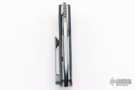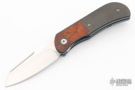 This LEXK Plus by Trevor Burger features a hand rub satin finished blade, swedge, notched front flipper and thumbrest. The handle features carbon fiber scales with inlaid desert iron wood burl bolsters, anodized titanium liners and tip up clip. Carbon fiber backspacer. Comes with a zippered case, and COA dated March 2020. Excellent Condition.