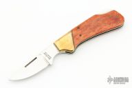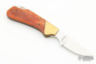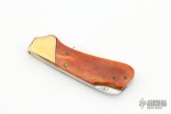 This vintage lockback by Kershaw features a mirror polished blade with nail nick. The handle has brass bolsters and stainless steel liners. The scales are Appaloosa Bone. Has some light scratches, otherwise excellent condition.