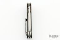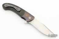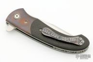This linerlock folder by DB Fraley features a hand rub satin finished blade with a flipper.  The handle features anodized titanium bolsters, satin titanium liners, carbon fiber scales, anodized titanium backspace with Lost Souls engraving, and a tip up anodized titanium clip with Lost Souls engraving. Comes with leather sleeve and COA dated 7/22/23. New from maker. #1