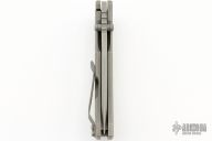 This MAC2 features a stonewashed drop point Magnacut blade with dual thumbstuds and a notched thumbrest.  The handle features a matte atomic fastback titanium frame with a matching tip up pocket clip. New condition. Comes with original box and papers.