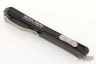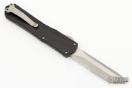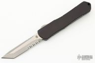 This model of the Manticore-X comes equipped with a stonewash finished tanto partially serrated blade and a black anodized aluminum handle. The Heretic Knives Manticore-X is a full size Out-the-Front knife with a clean and functional aesthetic. It features a contoured aluminum chassis with jimping all along the sides. This lightweight and capable OTF knife opens and closes smoothly, making for an excellent everyday or tactical carry. Comes with a ball-bearing glass breaker and a deep carry pocket clip. Comes with original box and papers. Excellent conition. #01648