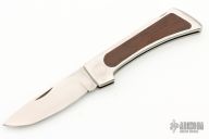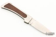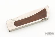 This Lockback Folder by Jimmy Lile features a satin finished blade with nail nick. The handle has a stainless steel frame with cocobolo inlays and stainless steel backspacer. Nice blade seating and lockup. Has some light scratches, otherwise excellent condition for its age.