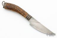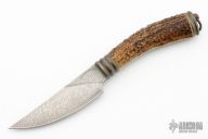 This hunter by Raymond Richard features a hand forged blade with hamon, .170" blade thickness and 1.118" blade depth, hidden tang construction. The handle has a fluted and textured steel guard and butt with lanyard ring, stag grip. Great look and feel. Excellent condition. Comes with a zippered case.