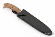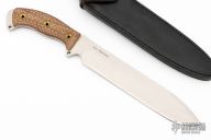 This Zero Tolerance Battle Mistress Ergo by Busse features a satin finished drop point blade with a false top edge, .192" blade stock and 1.685" blade depth, full tang construction. The handle has natural canvas micarta scales, lanyard hole. Comes with a black leather sheath. Has some light scratches, otherwise excellent condition.