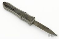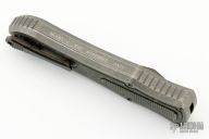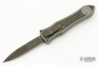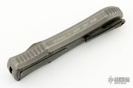 This knife is a Deadlock Model C by Grant and Gavin Hawk. It has a double-edged black blade. The handle has a Fat Carbon inlays in the black titanium frame with a tip down spring clip, titanium. The thumb slide on the handle is also titanium and handle has a titanium overlay. Comes with a cloth pouch. Grant and Gavin Hawk set out to create a double action OTF with no blade play.... They did it, NO blade play. Comes with tool, cloth pouch. New condition.