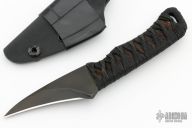 This Corax by Windy Raven Knifeworks features a black hawkbill blade with .195" blade stock and 1.231" blade depth, hidden tang construction. The handle has black cord. Comes with a kydex sheath with clip and COA. Excellent condition.
