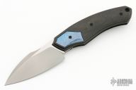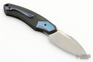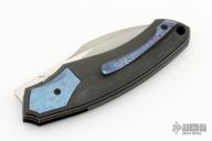 This Davless Knife by David Lespect was produced by Custom Knife Factory. It features a beadblast finish S90V blade with swedge and notched thumbrest, front flipper style opening. The handle has Titanium frame, milled G-10 scales with CrystalTi inlay, and DarkTi tip up clip. Rides on bearings, nice detent, lockup and blade seating. Comes with original pouch and COA dated 08/2023. Excellent Condition.