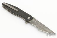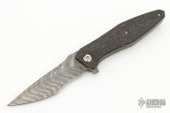 This Linerlock flipper by Alex Hossom features a Damascus blade with flipper. The handle has bog oak scales, titanium liners, floating Damscus backspacer, a tip with titanium clip. Comes with a zippered case. New from maker at the 2023 USN Gathering.