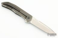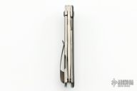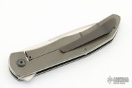This knife by Bob Terzuola features a two-tone blade with false top edge and flipper. The blade has a gold dot set in the spine. The handle has a carbon fiber frame and a two-tone titanium frame with a tip up clip with hidden screws. Rides on bearings, nice detent, lockup and blade seating. Comes with zippered case. New from maker at the 2023 USN Gathering.
