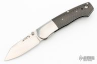 This Scott Sawby Combat Utility folder has his patented self lock system. The blade is hand rub satin finished with dual thumbstuds. The handle has dovetailed hand rub satin finished stainless steel bolsters with integral liners, black/blue silver lightning strike carbon fiber scales, tip up stainless steel clip and backspacer, clip is left/right reversible. Excellent condition. Comes with a velcro case.