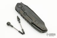 6AL-4V Titanium Handle, Carbon Fiber Inlay, Single Edge Tanto Blade, DLC Pivot Collar and Overtravel Stop, 32 Silicon Nitride Ball Race Bearing System, Proprietary Screws, Interchangeable Lanyards, Pocket Clip, Set of Bits.