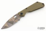 In 1988, he began making specialized knives for use by the military. This turned out to be fortunate turn of events, both for Mick and for the knife using world at large. Mick’s approach was to not get burdened by the weight of past designs. He started with a tabula rasa, a clean slate, informed only by his own experiences and knowledge of what a soldier needed in a knife. The knives he made didn’t look like the hunter-inspired knives seen in most PXs; instead they were almost brutish in their functionality: beefy, solid, and with unbreakable ¼” stock full tangs. These knives were the first indication of his innovative approach: in addition to their utilitarian design, the knives carried a subdued finish and subdued sheaths. No one carrying a Strider knife was going to be spotted because of sunlight glinting off of polished steel or a glossy leather sheath. Soldiers, policemen, and other men going into harm’s way couldn’t buy them fast enough. Mick sampled some good ideas, but made them great. For instance, he was not the first to wrap a knife handle with paracord, but he was the first to do it in a way that was tough enough for sustained infantry use. His knife line grew over the following years to include different varieties of fixed blades, all distinctive and many with specialized uses. But constant in all of them was a disregard for convention, and a desire to try new ideas. An example of this was the Ajax – it featured a very wide blade surface clearly designed to inflict damage. It drew on the weapons carried by Roman legionnaires, yet was modern and usable in the 21stCentury battlefield. Mick also worked on his technical skills, always striving to become better at the physical craft. At the 2002 Blade Show, a group of the best tactical knifemakers in the country decided to compete with each other to produce the most innovative and interesting fixed “battle blade” at the show. Mick’s entry, an incredible integral knife made out of ½” titanium stock with a zippered composite blade, gorgeous handles, and integral guard was the unanimous winner, and effectively retired the competition.