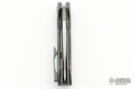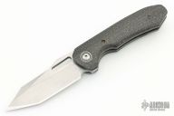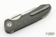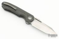 This linerlock folder by Steve Dumchus of Nova Blades features a satin finished blade with notched thumbrest and thumbhole. The handle has silver lightning strike carbon fiber scales, anodized titanium liners, titanium backspacer and tip up clip with hidden screws. Nice detent, lockup and blade seating. Excellent condition.
