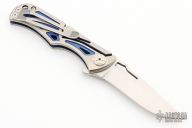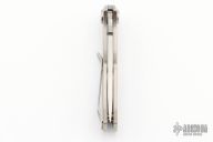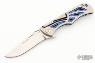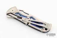 The Small Nirk Tighe design by Brian Tighe and Glenn Klecker won Blade Magazine's "Most Innovative Design" award for 2010. This flipper by Brian Tighe features a milled satin finish blade and a machined skeletonized titanium frame with anodized reliefs. The knife uses Glenn Klecker's lockback mechanism - pressing the lock release on the spine will release the lock. Excellent condition. Comes with a zippered case.