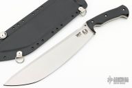 This Nomad Camp 12 by Work Tuff Gear features a satin finished Bohler K340 Steel blade with a saber grind that has a convex cutting edge, .250" blade stock and 2.488" blade depth, full tang construction with black G-10 scales with brown G-10 liners. Comes with a nicely fitted kydex sheath, zippered case and original box. New from maker. First Production Run Dated 06/2023