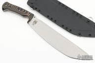 This Nomad Camp 12 by Work Tuff Gear features a Ghost finished Bohler K340 Steel blade with a saber grind that has a convex cutting edge, .250" blade stock and 2.488" blade depth, full tang construction with Tiger Stripe G-10 scales. Comes with a nicely fitted kydex sheath, zippered case and original box. New from maker. First Production Run Dated 06/2023