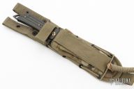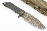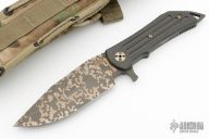 This Prototype by Darrel Ralph features a digicam clip point blade with a full tang construction.  .209" Blade Stock.  1.648" Blade Depth.  The handle has a notched thumbrest with carbon fiber scales.  It includes a nylon sheath.  Excellent Condition.