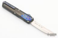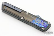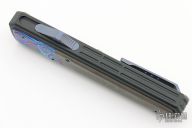 This OTF by Patrick Famin features a satin finished magnaucut clipoint blade.  The handle features an aluminum frame with Black Timascus and carbon fiber overlays.  Tip down anodized titanium pocket clip.  Includes a padded zippered case and COA.  Excellent condition.