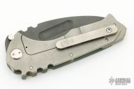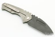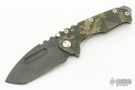 The Praetorian G, by Medford Knife and tool, features a bead blasted, anodized finished titanium/camo G-10 frame and black blade. The clip point blade material is D2 steel. The knife has a titanium clip, tip up carry.  Nice detent, lockup and blade seating. Excellent Condition.