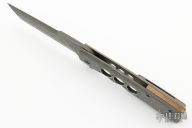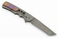 This Tanto by Jason Clark features a tanto style Damascus Blade. The handle has a Damascus and titanium frame. Mokuti tip up pocket clip and backspacer. Includes a padded zippered case. Excellent Condition.