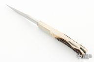 Considered a knife making legend, Jess Horn is primarily known for very high quality, top notch material custom folding knives. Jess Horn has been making knives since 1968 and, while occasionally making fixed blades, he is best known for his investor quality folders, working folders, and collectible period pieces. Jess's linerlock and slip joint folders are typically made with ATS-34 and 154CM stainless steel, and he uses a variety of natural handle materials, though favoring fossil Ivories and Stag for many of his knives. He was a longstanding voting member of the Knife Makers Guild. Jess passed away in 2016.