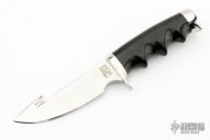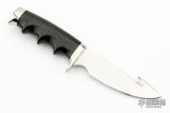 This Guthook Skinner by Walter Brend features a mirror polished blade with gut hook, .189" blade stock and 1.284" blade depth, hidden tang construction. The handle has a stainless steel guard and butt, black linen micarta grip. Comes with a zippered case. Excellent condition. One of a kind.