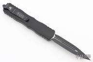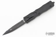 This Dirac Delta OTF automatic by Microtech features a D/E DLC finished blade with a fully serrated edge. The handle is DLC aluminum with a stainless steel tip down clip. Serial number 8157 and dated 03/2023. Comes with original box and papers. Excellent Condition.