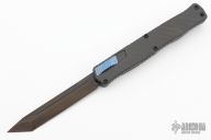 This Cleric II OTF by Heretic Knives features a black tanto Magnacut blade with fullers. The handle has a black aluminum frame with carbon fiber cover, blue anodized finish titanium tip down clip and hardware. Comes with original box and lube. Excellent condition.