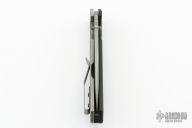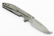 This Dauntless by Brian Fellhoelter features a tumbled blade with fullers, dual thumbstuds and a notched thumbrest.  The handle is composed of black G-10 and tumbled titanium with a titanium tip up pocket clip.  Nice detent, lock up and blade seating.  Excellent condition.  Comes with zippered case and DogTag COA dated July 2013