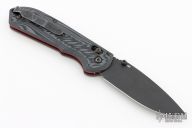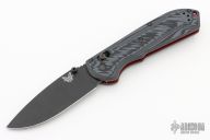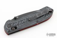 The FREEK, by Benchmade, features a drop point CPM-M4 steel blade with a black finish, dual thumb studs and a notched thumb ramp. The handle is composed of black/grey G-10 and red G-10 liners, black tip up reversible stainless tip pocket clip. Includes a zippered case. Has some scuffs, otherwise good condition.