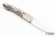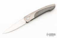 This beautiful Lancet button lock automatic features a satin ZDP-189 core blade HHRC 67) and a titanium frame with carbon fiber scales. White topaz inset in push button. Sliding safety. Clip.Blade Steel: ZDP-189 core @ HRC67. Has a couple light scuffs, excellent condition otherwise.