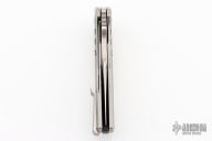 "Jason Brous began his efforts in knifemaking with the benefit of nearly 10 years of experience in CNC machining. His father owns a shop that specializes in the custom machining of high-precision components, mainly for the medical industry. Jason spent a lot of time in his father’s shop while growing up, and by his mid teens was actively helping out with production. His skills and knowledge steadily increased and by the time he was 20 he was a seasoned and very competent machinist. Jason's interest in knives actually began with art - specifically a style called “Bio-mechanical” - as practiced by one of his favorite artists, a Brazilian painter and tattooist named Lango. Biomechanical art (also called Biomech) is a surrealistic style of art that combines elements of machines and robotics with organic animal features. Intrigued by this style of art and its similarity to many fantasy knives, Jason figured that knifemaking would be a natural extension of his metalworking skills and an appropriate medium for his artistic ideas. Although he had no specific training in knifemaking, in 2010 he designed and made his first knife - a fantasy design with a Biomech flavor. Through persistent trial and error, Jason changed his style of knife design to focus on functional simplicity, while still maintaining a strong artistic signature. His early successes came in the form of a series of stout neck knives with dual finger-hole grips. Fans of these “Silent Soldier” neck knives began asking for other expressions of the design. Since then, Jason has created numerous variations including a clip point version, a tanto version and the very popular folder version called the Silent Soldier Flipper."