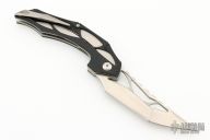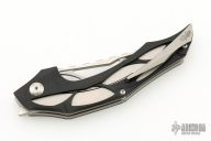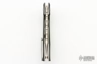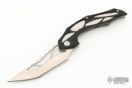 "Jason Brous began his efforts in knifemaking with the benefit of nearly 10 years of experience in CNC machining. His father owns a shop that specializes in the custom machining of high-precision components, mainly for the medical industry. Jason spent a lot of time in his father’s shop while growing up, and by his mid teens was actively helping out with production. His skills and knowledge steadily increased and by the time he was 20 he was a seasoned and very competent machinist. Jason's interest in knives actually began with art - specifically a style called “Bio-mechanical” - as practiced by one of his favorite artists, a Brazilian painter and tattooist named Lango. Biomechanical art (also called Biomech) is a surrealistic style of art that combines elements of machines and robotics with organic animal features. Intrigued by this style of art and its similarity to many fantasy knives, Jason figured that knifemaking would be a natural extension of his metalworking skills and an appropriate medium for his artistic ideas. Although he had no specific training in knifemaking, in 2010 he designed and made his first knife - a fantasy design with a Biomech flavor. Through persistent trial and error, Jason changed his style of knife design to focus on functional simplicity, while still maintaining a strong artistic signature. His early successes came in the form of a series of stout neck knives with dual finger-hole grips. Fans of these “Silent Soldier” neck knives began asking for other expressions of the design. Since then, Jason has created numerous variations including a clip point version, a tanto version and the very popular folder version called the Silent Soldier Flipper."