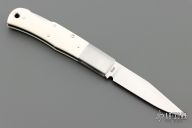 Considered a knife making legend, Jess Horn is primarily known for very high quality, top notch material custom folding knives. Jess Horn has been making knives since 1968 and, while occasionally making fixed blades, he is best known for his investor quality folders, working folders, and collectible period pieces. Jess's linerlock and slip joint folders are typically made with ATS-34 and 154CM stainless steel, and he uses a variety of natural handle materials, though favoring fossil Ivories and Stag for many of his knives. He was a longstanding voting member of the Knife Makers Guild. Jess passed away in 2016.