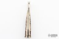 Considered a knife making legend, Jess Horn is primarily known for very high quality, top notch material custom folding knives. Jess Horn has been making knives since 1968 and, while occasionally making fixed blades, he is best known for his investor quality folders, working folders, and collectible period pieces. Jess's linerlock and slip joint folders are typically made with ATS-34 and 154CM stainless steel, and he uses a variety of natural handle materials, though favoring fossil Ivories and Stag for many of his knives. He was a longstanding voting member of the Knife Makers Guild. Jess passed away in 2016.
