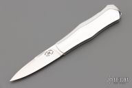 Steve Hoel made his first fixed blade knife in 1953. In 1974 Steve Hoel ventured to California, where he spent three days in the shop of Bob Loveless and Steve R. Johnson, when they were partners. This was his first real exposure to high quality handmade knives, an experience that gave him a big boost. He also developed a big interest in pocket knives at that time. Shortly thereafter he made his first interframe and multiblade folders. In 1978, he joined the Knifemakers Guild, and one year later he retired and began making knives full time. Steve was one of the first to design his knife shapes for engraving. He worked closely with master engravers including Lynton MacKenzie and Steve Lindsay to develop the engravable art knife design.