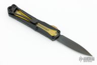 This Manticore-S by Heretic Knives features a DLC dagger style blade .  The handle has a black aluminum frame with a stainless steel tip down clip, ultem inlays and thumb slide. Comes with original box and papers. S/N may differ from photos. New from maker!