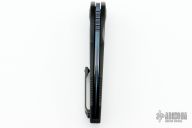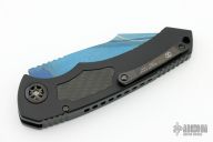 This D/A Pariah Auto by Heretic Knives features a Blued Baker Forge Elite AuroraMai blade with notched thumbrest and swedge. The handle has a black aluminum frame with carbon fiber inlays, DLC titanium pivot collars and a tip up clip with ceramic ball. Serial Number 027 Dated 08/23. Comes with original box. New from maker!