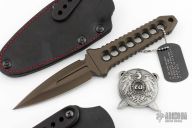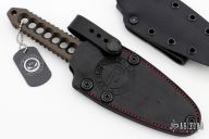 Zu Bladeworx Subsonic in Bronze, made from Uddeholm Rigor tool steel, hardened and double tempered to RC 58-60. It comes with both Kydex and Leather Sheath and Zu's badass challenge coin!