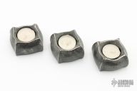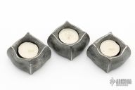 3 Forged Damascus Steel Candle Holders by Michael Andersson. Approximately 3"x3". Excellent condition.