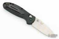 This Mini Griptilian by Benchmade features a stonewashed drop point blade with dual thumbstuds. The handle has black G-10 scales, stainless steel liners, has right or left tip up carry clip. Includes the original box, FRN scales and papers. Excellent Condition.