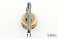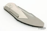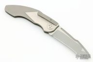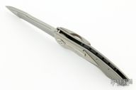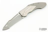 This Custom E-Lock Auto by Allen Elishewitz features a two-tone multi-ground blade with fullers. The handle has a two-tone finished titanium frame with black G-10 backspacer, tip down satin stainless steel clip. Nice lockup, action and blade seating. Has a few light scuffs, otherwise excellent condition. #9